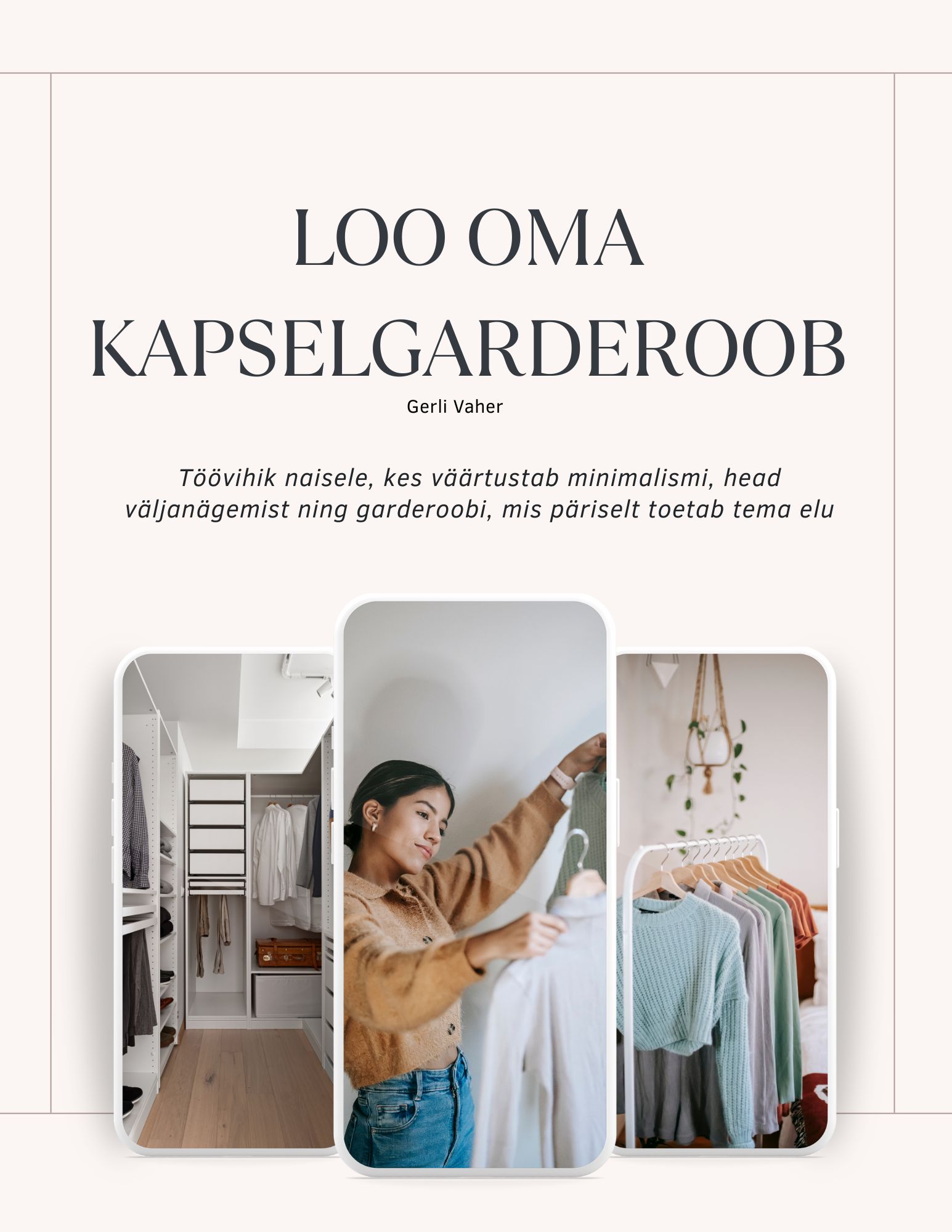 Selle kõige juures teeme komplekte ning loome pisikese toimiva kapsli, lähtudes KAPSELGARDEROOBI põhitõdedest. Töövihiku lõpuks oled teinud ühe suure sammu toimiva garderoobi suunas. Kui oled olnud aga eriti usin, on muutus silmnähtav mitte ainult sulle vaid ka teistele!